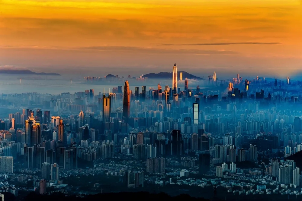 40年春風(fēng)化雨,40年春華秋實。深圳實現(xiàn)了由一座落后的邊陲小鎮(zhèn)到具有全球影響力的國際化大都市的歷史性跨越。圖為從梧桐山由東往西拍攝的深圳全景。深圳市委供圖 譚偉明/攝
