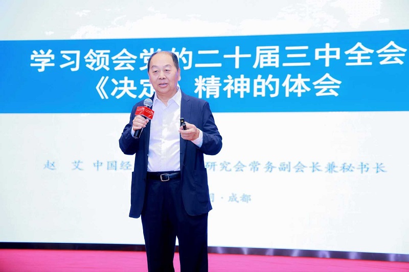 趙艾談到,黨的二十屆三中全會是在新時代新征程進(jìn)一步全面深化改革開放,推進(jìn)中國式現(xiàn)代化關(guān)鍵時期召開的一次十分重要的會議,全會審議通過了《中共中央關(guān)于進(jìn)一步全面深化改革、推進(jìn)中國式現(xiàn)代化的決定》,提出了60條300多項(xiàng)重點(diǎn)改革舉措,內(nèi)容豐富、分量很重、成色十足?!稕Q定》對于繼續(xù)完善和發(fā)展中國特色社會主義制度,推進(jìn)國家治理體系和治理能力現(xiàn)代化,到2035年全面建成高水平社會主義市場經(jīng)濟(jì)體制,中國特色社會主義制度更加完善,基本實(shí)現(xiàn)國家治理體系和治理能力現(xiàn)代化,基本實(shí)現(xiàn)社會主義現(xiàn)代化,為到本世紀(jì)中葉全面建成社會主義現(xiàn)代化強(qiáng)國具有十分重要的意義。成都高新區(qū)在全面深化改革開放,以科技創(chuàng)新為引領(lǐng),因地制宜發(fā)展新質(zhì)生產(chǎn)力,激發(fā)高質(zhì)量發(fā)展內(nèi)生動力,推動產(chǎn)業(yè)結(jié)構(gòu)優(yōu)化升級等方面,積累了一系列可圈可點(diǎn)的經(jīng)驗(yàn)和做法,取得了一系列的亮眼成績。希望成都高新區(qū)百尺桿頭,再接再厲,按照黨的二十屆三中全會的精神,進(jìn)一步深化體制機(jī)制改革創(chuàng)新,以新質(zhì)生產(chǎn)力發(fā)展為引擎,推動高質(zhì)量發(fā)展等方面取得更優(yōu)異的成績。中國經(jīng)濟(jì)體制改革研究會十分樂意與成都高新區(qū)就體制機(jī)制改革創(chuàng)新的重大問題開展合作研究。